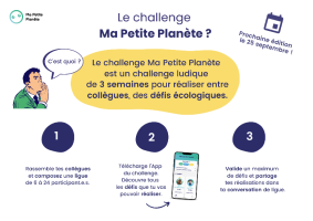 Le but de ce challenge est de se réunir en équipe de 6 à 24 personnes et de réaliser des défis en lien avec l’écologie pendant 3 semaines selon son rythme et son envie.