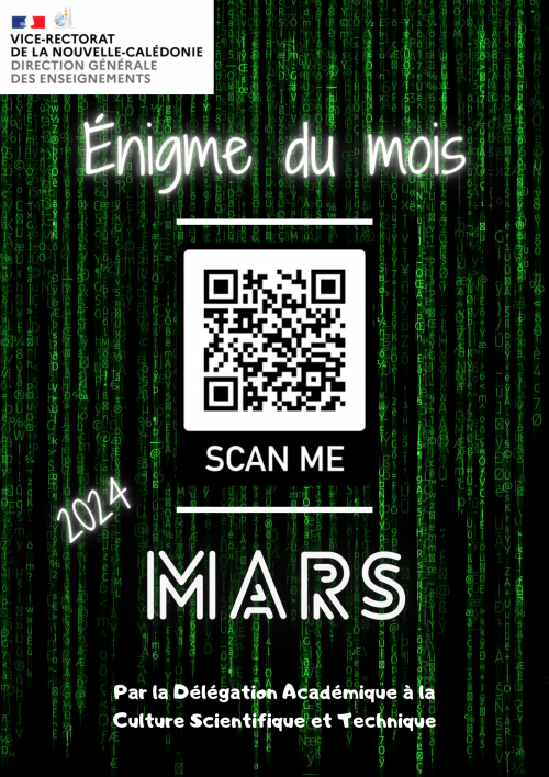 Pour participer à l’énigme du mois de mars 2024, il vous suffit de scanner le QR code ou de cliquer sur le lien : ÉNIGME